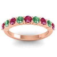 This Ruby wedding ring is casted in 18K Rose Gold and set with fine quality Ruby and Emerald. All of the gemstones we use are of the top 10% available, those found in fine quality boutiques across the world. This Ruby wedding band can also be added to your collection of minimalist Ruby rings. This Vibrant Band Is Perfect For Adding A Touch Of Color To Your Day While Making A Statement. Your 9 Round Colored Stones Delicately Set in A Shared Pave Setting with A Flat Band. Free shipping, returns, resizing, and a lifetime warranty ensure you love your purchase.