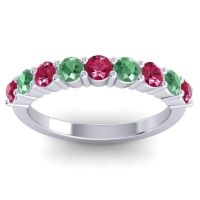 This Ruby wedding ring is casted in 14k White Gold and set with fine quality Ruby and Emerald. All of the gemstones we use are of the top 10% available, those found in fine quality boutiques across the world. This Ruby wedding band can also be added to your collection of minimalist Ruby rings. This Vibrant Band Is Perfect For Adding A Touch Of Color To Your Day While Making A Statement. Your 9 Round Colored Stones Delicately Set in A Shared Pave Setting with A Flat Band. Free shipping, returns, resizing, and a lifetime warranty ensure you love your purchase.