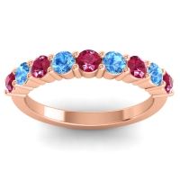 This Ruby wedding ring is casted in 18K Rose Gold and set with fine quality Ruby and Swiss Blue Topaz. All of the gemstones we use are of the top 10% available, those found in fine quality boutiques across the world. This Ruby wedding band can also be added to your collection of minimalist Ruby rings. This Vibrant Band Is Perfect For Adding A Touch Of Color To Your Day While Making A Statement. Your 9 Round Colored Stones Delicately Set in A Shared Pave Setting with A Flat Band. Free shipping, returns, resizing, and a lifetime warranty ensure you love your purchase.