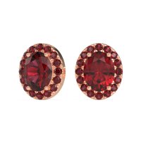 These Lab Ruby earrings and made in 18K Rose Gold with top quality Lab Ruby and Ruby gemstones. These Classic Oval Halo Stud Earrings Feature A Brilliant Oval-cut Center Stone Elegantly Encircled By A Sparkling Halo Of Smaller Gems. This Enduring Design Maximizes Light And Creates A Captivating Presence, Perfect For Adding Sophisticated Sparkle To Any Occasion. Free shipping, returns, and a lifetime warranty make luxury worry-free