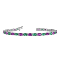 These 18k White Gold bracelets feature fine quality Emerald gemstones. Embrace Endless Sparkle with This Modern Take On The Iconic Tennis Bracelet, Featuring A Radiant Procession Of Oval Gems. The Gems Go All The Way To Form An Eternity Bracelet. Free shipping, returns, and a lifetime warranty make luxury worry-free
