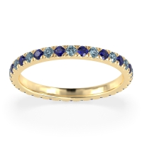 This Aquamarine wedding ring is casted in 18k Yellow Gold and set with fine quality Aquamarine and Blue Sapphire. All of the gemstones we use are of the top 10% available, those found in fine quality boutiques across the world. This Aquamarine wedding band can also be added to your collection of minimalist Aquamarine rings. This Classic Eternity Band Features 1.7mm Stones Going All The Way Around, in A Pave Setting. Free shipping, returns, resizing, and a lifetime warranty ensure you love your purchase.