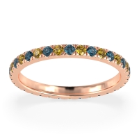 This London Blue Topaz wedding ring is casted in 18K Rose Gold and set with fine quality London Blue Topaz and Citrine. All of the gemstones we use are of the top 10% available, those found in fine quality boutiques across the world. This London Blue Topaz wedding band can also be added to your collection of minimalist London Blue Topaz rings. This Classic Eternity Band Features 1.7mm Stones Going All The Way Around, in A Pave Setting. Free shipping, returns, resizing, and a lifetime warranty ensure you love your purchase.