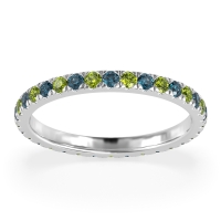 This London Blue Topaz wedding ring is casted in Platinum and set with fine quality London Blue Topaz and Peridot. All of the gemstones we use are of the top 10% available, those found in fine quality boutiques across the world. This London Blue Topaz wedding band can also be added to your collection of minimalist London Blue Topaz rings. This Classic Eternity Band Features 1.7mm Stones Going All The Way Around, in A Pave Setting. Free shipping, returns, resizing, and a lifetime warranty ensure you love your purchase.