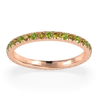 This Peridot wedding ring is casted in 18K Rose Gold and set with fine quality Peridot and Citrine. All of the gemstones we use are of the top 10% available, those found in fine quality boutiques across the world. This Peridot wedding band can also be added to your collection of minimalist Peridot rings. This Classic Eternity Band Features 1.7mm Stones Going All The Way Around, in A Pave Setting. Free shipping, returns, resizing, and a lifetime warranty ensure you love your purchase.