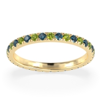 This Peridot wedding ring is casted in 18k Yellow Gold and set with fine quality Peridot and London Blue Topaz. All of the gemstones we use are of the top 10% available, those found in fine quality boutiques across the world. This Peridot wedding band can also be added to your collection of minimalist Peridot rings. This Classic Eternity Band Features 1.7mm Stones Going All The Way Around, in A Pave Setting. Free shipping, returns, resizing, and a lifetime warranty ensure you love your purchase.