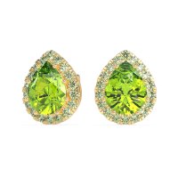 These 18k Yellow Gold Peridot earrings feature top quality Natural Peridot gemstones. Adorn Your Ears With These Classic Pear-shaped Halo Stud Earrings, Designed To Deliver Maximum Sparkle And Timeless Sophistication. The Dazzling Halo Perfectly Frames The Brilliant Pear-cut Center. Free shipping, returns, and a lifetime warranty make luxury worry-free