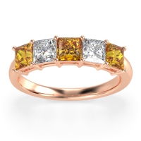 This Citrine wedding ring is casted in 14K Rose Gold and set with fine quality Citrine and Lab Diamond. All of the gemstones we use are of the top 10% available, those found in fine quality boutiques across the world. This Citrine wedding band can also be added to your collection of minimalist Citrine rings. Adorned with A Classic Single Row Of Princess-cut Gems, This Wedding Band Is A Timeless Piece. Free shipping, returns, resizing, and a lifetime warranty ensure you love your purchase.