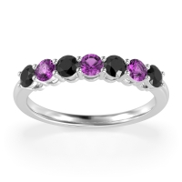 This Black Onyx wedding ring is casted in Platinum and set with fine quality Black Onyx and Amethyst. All of the gemstones we use are of the top 10% available, those found in fine quality boutiques across the world. This Black Onyx wedding band can also be added to your collection of minimalist Black Onyx rings. This Classic Women’s Band Showcases Seven Centrally Aligned Stones. Free shipping, returns, resizing, and a lifetime warranty ensure you love your purchase.