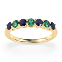This Blue Sapphire wedding ring is casted in 18k Yellow Gold and set with fine quality Blue Sapphire and Emerald. All of the gemstones we use are of the top 10% available, those found in fine quality boutiques across the world. This Blue Sapphire wedding band can also be added to your collection of minimalist Blue Sapphire rings. This Classic Women’s Band Showcases Seven Centrally Aligned Stones. Free shipping, returns, resizing, and a lifetime warranty ensure you love your purchase.