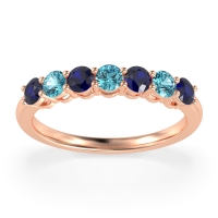This Blue Sapphire wedding ring is casted in 14K Rose Gold and set with fine quality Blue Sapphire and Swiss Blue Topaz. All of the gemstones we use are of the top 10% available, those found in fine quality boutiques across the world. This Blue Sapphire wedding band can also be added to your collection of minimalist Blue Sapphire rings. This Classic Women’s Band Showcases Seven Centrally Aligned Stones. Free shipping, returns, resizing, and a lifetime warranty ensure you love your purchase.