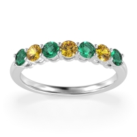 This Emerald wedding ring is casted in 18k White Gold and set with fine quality Emerald and Citrine. All of the gemstones we use are of the top 10% available, those found in fine quality boutiques across the world. This Emerald wedding band can also be added to your collection of minimalist Emerald rings. This Classic Women’s Band Showcases Seven Centrally Aligned Stones. Free shipping, returns, resizing, and a lifetime warranty ensure you love your purchase.