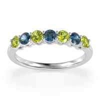 This Peridot wedding ring is casted in 14k White Gold and set with fine quality Peridot and London Blue Topaz. All of the gemstones we use are of the top 10% available, those found in fine quality boutiques across the world. This Peridot wedding band can also be added to your collection of minimalist Peridot rings. This Classic Women’s Band Showcases Seven Centrally Aligned Stones. Free shipping, returns, resizing, and a lifetime warranty ensure you love your purchase.