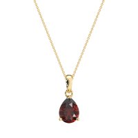 This Garnet Classic Necklace is casted in 14k Yellow Gold. We use only exceptionally fine gemstones, truly on par with those found in the world's most exclusive boutiques and representing the top 10% available globally. This Simple Yet Refined Pendant Features A Single, Pear-shaped Stone in A Solitaire Setting. You'll get a complimentary 18-inch chain with every necklace. Plus, enjoy a 30-day, hassle-free return policy (we even cover return shipping!) and a Lifetime Warranty for peace of mind.