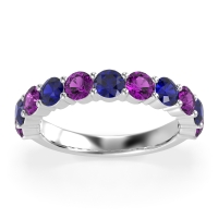 This Amethyst wedding ring is casted in Palladium and set with fine quality Amethyst and Blue Sapphire. All of the gemstones we use are of the top 10% available, those found in fine quality boutiques across the world. This Amethyst wedding band can also be added to your collection of minimalist Amethyst rings. A Timeless And Elegant Three-quarter Eternity Band, Showcasing A Graceful Balance Of Sparkle And Simplicity. Free shipping, returns, resizing, and a lifetime warranty ensure you love your purchase.