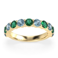 This Aquamarine wedding ring is casted in 14k Yellow Gold and set with fine quality Aquamarine and Emerald. All of the gemstones we use are of the top 10% available, those found in fine quality boutiques across the world. This Aquamarine wedding band can also be added to your collection of minimalist Aquamarine rings. A Timeless And Elegant Three-quarter Eternity Band, Showcasing A Graceful Balance Of Sparkle And Simplicity. Free shipping, returns, resizing, and a lifetime warranty ensure you love your purchase.