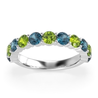 This London Blue Topaz wedding ring is casted in 18k White Gold and set with fine quality London Blue Topaz and Peridot. All of the gemstones we use are of the top 10% available, those found in fine quality boutiques across the world. This London Blue Topaz wedding band can also be added to your collection of minimalist London Blue Topaz rings. A Timeless And Elegant Three-quarter Eternity Band, Showcasing A Graceful Balance Of Sparkle And Simplicity. Free shipping, returns, resizing, and a lifetime warranty ensure you love your purchase.