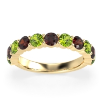 This Peridot wedding ring is casted in 14k Yellow Gold and set with fine quality Peridot and Garnet. All of the gemstones we use are of the top 10% available, those found in fine quality boutiques across the world. This Peridot wedding band can also be added to your collection of minimalist Peridot rings. A Timeless And Elegant Three-quarter Eternity Band, Showcasing A Graceful Balance Of Sparkle And Simplicity. Free shipping, returns, resizing, and a lifetime warranty ensure you love your purchase.