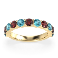 This Swiss Blue Topaz wedding ring is casted in 14k Yellow Gold and set with fine quality Swiss Blue Topaz and Ruby. All of the gemstones we use are of the top 10% available, those found in fine quality boutiques across the world. This Swiss Blue Topaz wedding band can also be added to your collection of minimalist Swiss Blue Topaz rings. A Timeless And Elegant Three-quarter Eternity Band, Showcasing A Graceful Balance Of Sparkle And Simplicity. Free shipping, returns, resizing, and a lifetime warranty ensure you love your purchase.