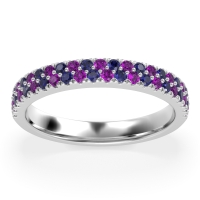 This Amethyst wedding ring is casted in Platinum and set with fine quality Amethyst and Blue Sapphire. All of the gemstones we use are of the top 10% available, those found in fine quality boutiques across the world. This Amethyst wedding band can also be added to your collection of minimalist Amethyst rings. This Classic Wedding Band, Consists Of Two Rows Of Round Gemstones Going Half Way Down The Shank. Free shipping, returns, resizing, and a lifetime warranty ensure you love your purchase.