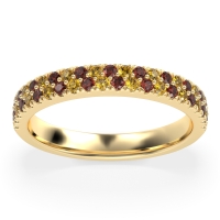 This Garnet wedding ring is casted in 18k Yellow Gold and set with fine quality Garnet and Citrine. All of the gemstones we use are of the top 10% available, those found in fine quality boutiques across the world. This Garnet wedding band can also be added to your collection of minimalist Garnet rings. This Classic Wedding Band, Consists Of Two Rows Of Round Gemstones Going Half Way Down The Shank. Free shipping, returns, resizing, and a lifetime warranty ensure you love your purchase.