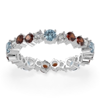 This 14k White Gold Aquamarine wedding ring features gemstones, along with fine quality Garnet and Diamond. We only use the top 10% of gemstones available. This women's ring can be worn as a Aquamarine wedding band, or even as an addition to your Aquamarine rings collection. This Eternity Band Boasts A Captivating Constellation Effect, Created By Randomly Set Gemstones Of Different Sizes. This product comes with Free Shipping, Free Returns, Free Resize and a lifetime warranty. Choose from a variety of gems and metals to make a truly unique custom band!.