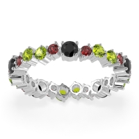 This Palladium Black Onyx wedding ring features AAAA gemstones, along with fine quality Peridot and Ruby. We only use the top 10% of gemstones available. This women's ring can be worn as a Black Onyx wedding band, or even as an addition to your Black Onyx rings collection. This Eternity Band Boasts A Captivating Constellation Effect, Created By Randomly Set Gemstones Of Different Sizes. This product comes with Free Shipping, Free Returns, Free Resize and a lifetime warranty. Choose from a variety of gems and metals to make a truly unique custom band!.