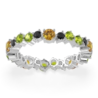This Palladium Citrine wedding ring features AAAA gemstones, along with fine quality Peridot and Black Onyx. We only use the top 10% of gemstones available. This women's ring can be worn as a Citrine wedding band, or even as an addition to your Citrine rings collection. This Eternity Band Boasts A Captivating Constellation Effect, Created By Randomly Set Gemstones Of Different Sizes. This product comes with Free Shipping, Free Returns, Free Resize and a lifetime warranty. Choose from a variety of gems and metals to make a truly unique custom band!.