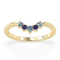 This Aquamarine wedding ring is casted in 14k Yellow Gold and set with fine quality Aquamarine and Blue Sapphire. All of the gemstones we use are of the top 10% available, those found in fine quality boutiques across the world. This Aquamarine wedding band can also be added to your collection of minimalist Aquamarine rings. Designed To Perfectly Contour Your Engagement Ring, This Curved Band Creates A Stunning Ensemble. Free shipping, returns, resizing, and a lifetime warranty ensure you love your purchase.