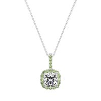 This Lab Diamond and Peridot Necklace is casted in 14k White Gold. This Women’s Halo necklace features exceptionally fine gemstones, on par with those found in the world's most exclusive boutiques and among the top 10% available globally. Elegant Pendant Featuring A Central Cushion-cut Stone Embraced By A Halo Of Smaller Stones. The Bail Is Also Adorned with Delicate Stone Accents. This necklace comes with a complimentary 18-inch chain. Enjoy the confidence of our 30-day, stress-free return policy—with return shipping fully covered. Each piece is also accompanied by a Lifetime Warranty, ensuring lasting beauty and peace of mind.
