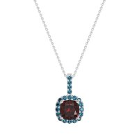 This Lab Ruby and London Blue Topaz Necklace is casted in 14k White Gold. This Women’s Halo necklace features exceptionally fine gemstones, on par with those found in the world's most exclusive boutiques and among the top 10% available globally. Elegant Pendant Featuring A Central Cushion-cut Stone Embraced By A Halo Of Smaller Stones. The Bail Is Also Adorned with Delicate Stone Accents. This necklace comes with a complimentary 18-inch chain. Enjoy the confidence of our 30-day, stress-free return policy—with return shipping fully covered. Each piece is also accompanied by a Lifetime Warranty, ensuring lasting beauty and peace of mind.
