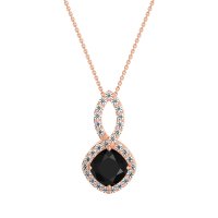 This Black Onyx and Lab Diamond Necklace is casted in 14K Rose Gold. This Women’s Halo necklace features exceptionally fine gemstones, on par with those found in the world's most exclusive boutiques and among the top 10% available globally. This Elegant Pendant Showcases A Cushion-cut Center Stone Embraced By A Halo Of Smaller Gems. The Bail Is Also Adorned with Sparkling Stones. This necklace comes with a complimentary 18-inch chain. Enjoy the confidence of our 30-day, stress-free return policy—with return shipping fully covered. Each piece is also accompanied by a Lifetime Warranty, ensuring lasting beauty and peace of mind.