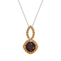 This Lab Ruby and Citrine Necklace is casted in Palladium. This Women’s Halo necklace features exceptionally fine gemstones, on par with those found in the world's most exclusive boutiques and among the top 10% available globally. This Elegant Pendant Showcases A Cushion-cut Center Stone Embraced By A Halo Of Smaller Gems. The Bail Is Also Adorned with Sparkling Stones. This necklace comes with a complimentary 18-inch chain. Enjoy the confidence of our 30-day, stress-free return policy—with return shipping fully covered. Each piece is also accompanied by a Lifetime Warranty, ensuring lasting beauty and peace of mind.