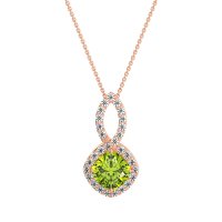 This Peridot and Lab Diamond Necklace is casted in 14K Rose Gold. This Women’s Halo necklace features exceptionally fine gemstones, on par with those found in the world's most exclusive boutiques and among the top 10% available globally. This Elegant Pendant Showcases A Cushion-cut Center Stone Embraced By A Halo Of Smaller Gems. The Bail Is Also Adorned with Sparkling Stones. This necklace comes with a complimentary 18-inch chain. Enjoy the confidence of our 30-day, stress-free return policy—with return shipping fully covered. Each piece is also accompanied by a Lifetime Warranty, ensuring lasting beauty and peace of mind.