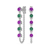 These Amethyst earrings and made in Platinum with top quality Natural Amethyst and Emerald gemstones. This Exquisite Design Redefines Luxury With A Fashionable Edge. It Features A Dazzling Row Of Gracefully Dangling Gemstones, Complemented By A Delicate Chain Elegantly Attached At The Bottom, Creating A Look And Feel Of Unparalleled Sophistication And Contemporary Chic. Free shipping, returns, and a lifetime warranty make luxury worry-free