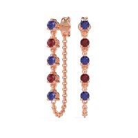 These Blue Sapphire earrings and made in 14K Rose Gold with top quality Natural Blue Sapphire and Ruby gemstones. This Exquisite Design Redefines Luxury With A Fashionable Edge. It Features A Dazzling Row Of Gracefully Dangling Gemstones, Complemented By A Delicate Chain Elegantly Attached At The Bottom, Creating A Look And Feel Of Unparalleled Sophistication And Contemporary Chic. Free shipping, returns, and a lifetime warranty make luxury worry-free
