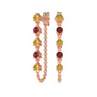 These Citrine earrings and made in 18K Rose Gold with top quality Natural Citrine and Ruby gemstones. This Exquisite Design Redefines Luxury With A Fashionable Edge. It Features A Dazzling Row Of Gracefully Dangling Gemstones, Complemented By A Delicate Chain Elegantly Attached At The Bottom, Creating A Look And Feel Of Unparalleled Sophistication And Contemporary Chic. Free shipping, returns, and a lifetime warranty make luxury worry-free