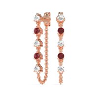 These Diamond earrings and made in 18K Rose Gold with top quality Natural Diamond and Ruby gemstones. This Exquisite Design Redefines Luxury With A Fashionable Edge. It Features A Dazzling Row Of Gracefully Dangling Gemstones, Complemented By A Delicate Chain Elegantly Attached At The Bottom, Creating A Look And Feel Of Unparalleled Sophistication And Contemporary Chic. Free shipping, returns, and a lifetime warranty make luxury worry-free