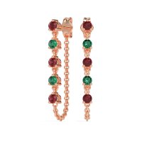 These Ruby earrings and made in 18K Rose Gold with top quality Natural Ruby and Emerald gemstones. This Exquisite Design Redefines Luxury With A Fashionable Edge. It Features A Dazzling Row Of Gracefully Dangling Gemstones, Complemented By A Delicate Chain Elegantly Attached At The Bottom, Creating A Look And Feel Of Unparalleled Sophistication And Contemporary Chic. Free shipping, returns, and a lifetime warranty make luxury worry-free