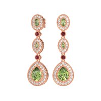 These 14K Rose Gold Peridot earrings feature fine quality with Peridot, Ruby and Lab Diamond gemstones. These Classic Dangling Earrings Showcase A Captivating Combination Of Halo-set Pear And Marquise Gemstones, Secured With A Comfortable Pushback Closure. Free shipping, returns, and a lifetime warranty make luxury worry-free.