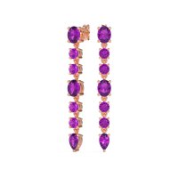 These 18K Rose Gold Amethyst earrings feature top quality Natural Amethyst gemstones. For Those Who Appreciate Distinctive Beauty, These Dangling Earrings Are An Absolute Must-have. They Beautifully Combine The Timeless Appeal Of Rounds And Ovals With The Striking Allure Of A Pear-shaped Gemstone At The Base, Creating A Truly Unique And Beautiful Accessory. Free shipping, returns, and a lifetime warranty make luxury worry-free
