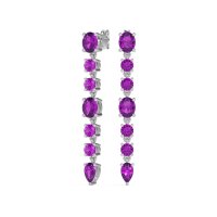 These 18k White Gold Amethyst earrings feature top quality Natural Amethyst gemstones. For Those Who Appreciate Distinctive Beauty, These Dangling Earrings Are An Absolute Must-have. They Beautifully Combine The Timeless Appeal Of Rounds And Ovals With The Striking Allure Of A Pear-shaped Gemstone At The Base, Creating A Truly Unique And Beautiful Accessory. Free shipping, returns, and a lifetime warranty make luxury worry-free