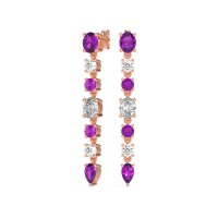 These Amethyst earrings and made in 18K Rose Gold with top quality Amethyst and Lab Diamond gemstones. For Those Who Appreciate Distinctive Beauty, These Dangling Earrings Are An Absolute Must-have. They Beautifully Combine The Timeless Appeal Of Rounds And Ovals With The Striking Allure Of A Pear-shaped Gemstone At The Base, Creating A Truly Unique And Beautiful Accessory. Free shipping, returns, and a lifetime warranty make luxury worry-free