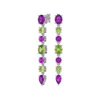 These Amethyst earrings and made in 18k White Gold with top quality Natural Amethyst and Peridot gemstones. For Those Who Appreciate Distinctive Beauty, These Dangling Earrings Are An Absolute Must-have. They Beautifully Combine The Timeless Appeal Of Rounds And Ovals With The Striking Allure Of A Pear-shaped Gemstone At The Base, Creating A Truly Unique And Beautiful Accessory. Free shipping, returns, and a lifetime warranty make luxury worry-free