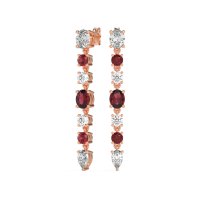 These Lab Diamond earrings and made in 18K Rose Gold with top quality Lab Diamond and Ruby gemstones. For Those Who Appreciate Distinctive Beauty, These Dangling Earrings Are An Absolute Must-have. They Beautifully Combine The Timeless Appeal Of Rounds And Ovals With The Striking Allure Of A Pear-shaped Gemstone At The Base, Creating A Truly Unique And Beautiful Accessory. Free shipping, returns, and a lifetime warranty make luxury worry-free