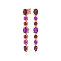 These Ruby earrings and made in 18K Rose Gold with top quality Natural Ruby and Amethyst gemstones. For Those Who Appreciate Distinctive Beauty, These Dangling Earrings Are An Absolute Must-have. They Beautifully Combine The Timeless Appeal Of Rounds And Ovals With The Striking Allure Of A Pear-shaped Gemstone At The Base, Creating A Truly Unique And Beautiful Accessory. Free shipping, returns, and a lifetime warranty make luxury worry-free