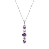 This Amethyst and Lab Diamond Necklace is casted in Palladium. This Women’s Classic necklace features exceptionally fine gemstones, on par with those found in the world's most exclusive boutiques and among the top 10% available globally. Sleek Pendant Featuring A Bezel-set Center Stone. Delicate Stones Are Nestled Between Each Bezel Along The Pendant's Design, Adding Subtle Sparkle. This necklace comes with a complimentary 18-inch chain. Enjoy the confidence of our 30-day, stress-free return policy—with return shipping fully covered. Each piece is also accompanied by a Lifetime Warranty, ensuring lasting beauty and peace of mind.