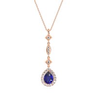 This Blue Sapphire and Lab Diamond Necklace is casted in 14K Rose Gold. This Women’s Halo necklace features exceptionally fine gemstones, on par with those found in the world's most exclusive boutiques and among the top 10% available globally. Elegant, Elongated Pendant Featuring A Pear-shaped Stone At The Base, Followed By Two Square And One Marquise-shaped Designs, Set with Round Gems. This necklace comes with a complimentary 18-inch chain. Enjoy the confidence of our 30-day, stress-free return policy—with return shipping fully covered. Each piece is also accompanied by a Lifetime Warranty, ensuring lasting beauty and peace of mind.