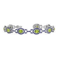 These 14k White Gold bracelets feature fine quality Blue Sapphire gemstones. This Halo Bracelet Consists Of A Beautiful Oval Shaped Gem Floating in Between A Halo Of Gems, Connected By Gemstone Links. Free shipping, returns, and a lifetime warranty make luxury worry-free