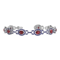 These 14k White Gold bracelets feature fine quality Blue Sapphire gemstones. This Halo Bracelet Consists Of A Beautiful Oval Shaped Gem Floating in Between A Halo Of Gems, Connected By Gemstone Links. Free shipping, returns, and a lifetime warranty make luxury worry-free